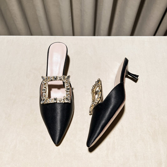 White Flower Decorative Flip-toe Square Toe High Heel Sandals